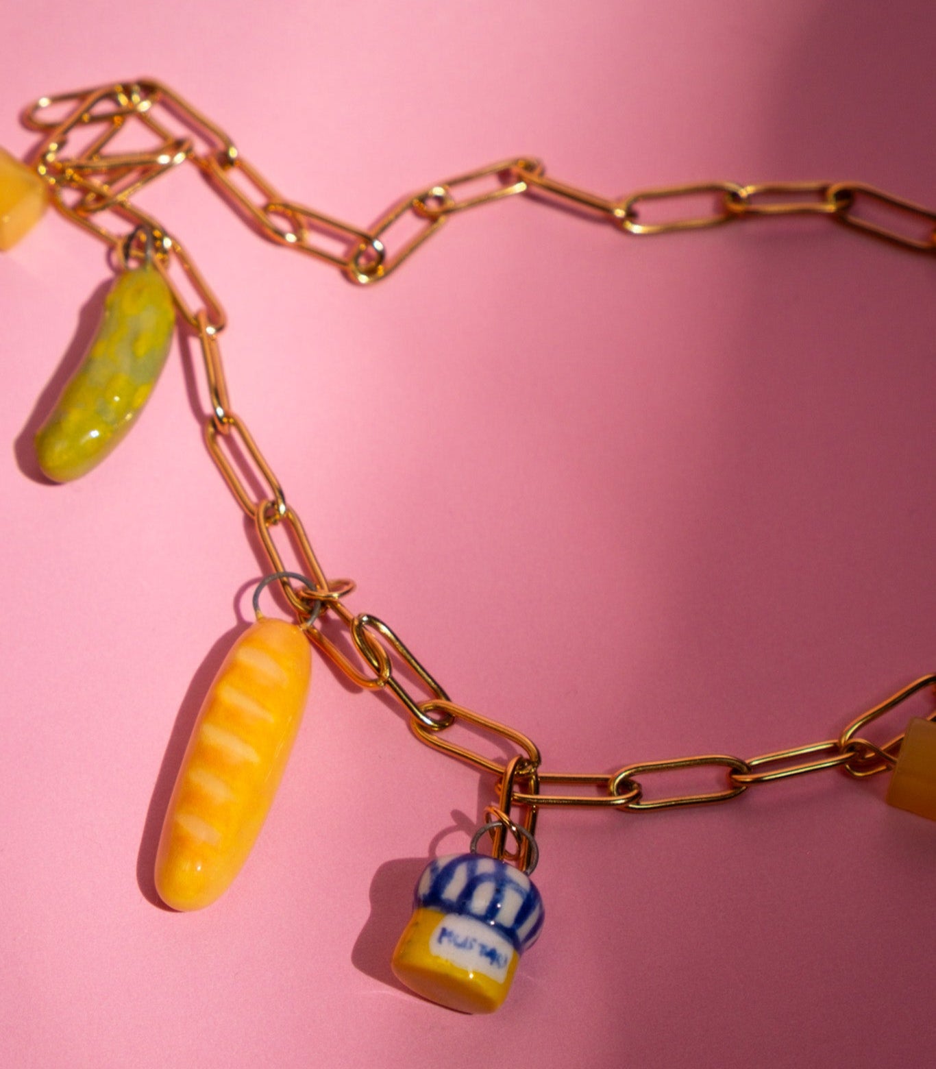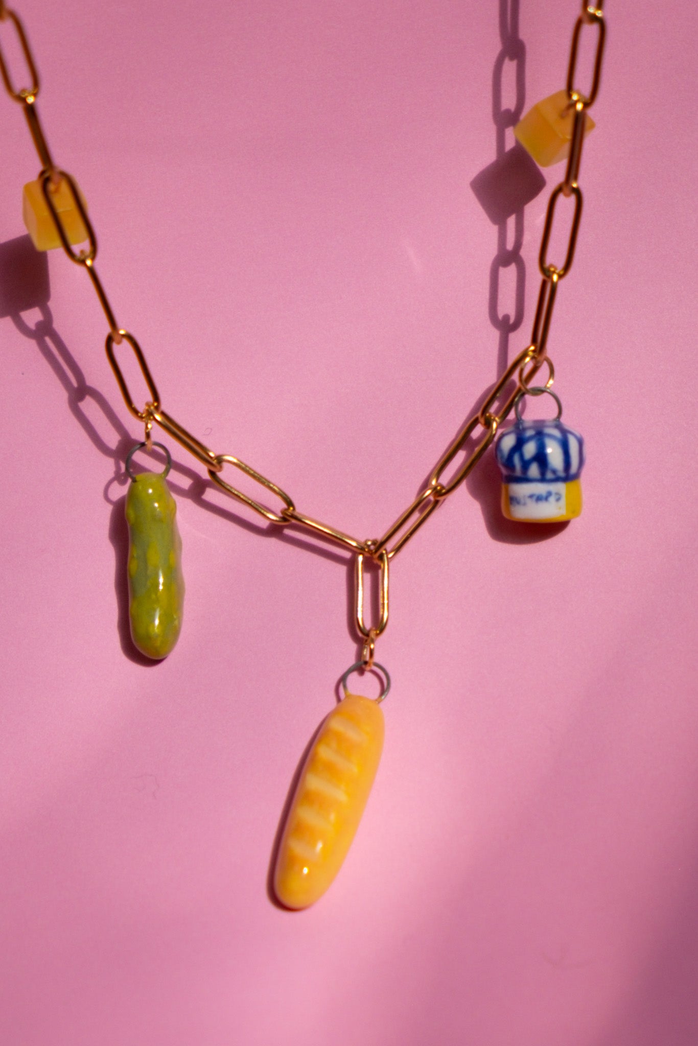 Stainless steel chain with handpainted porcelain charms.