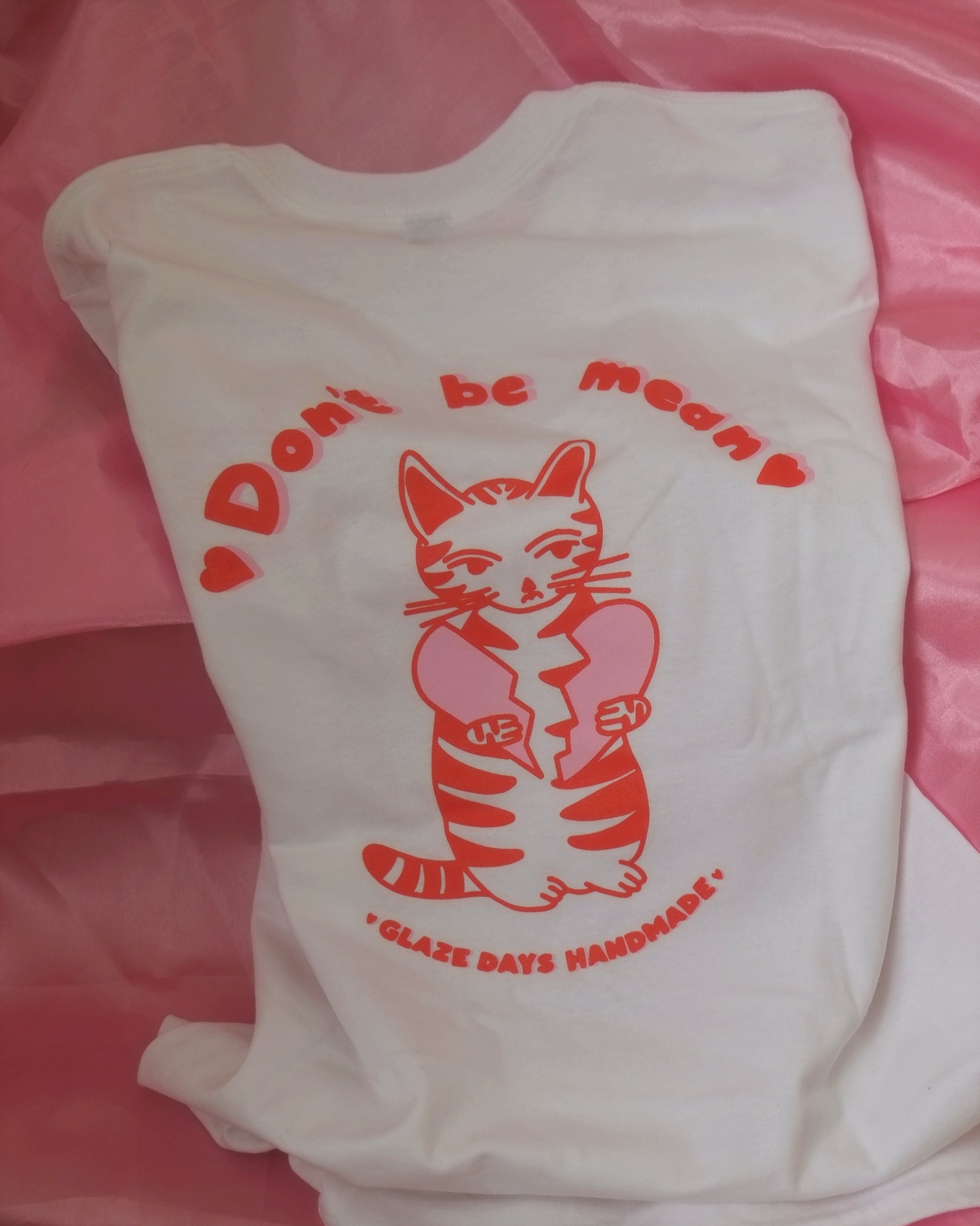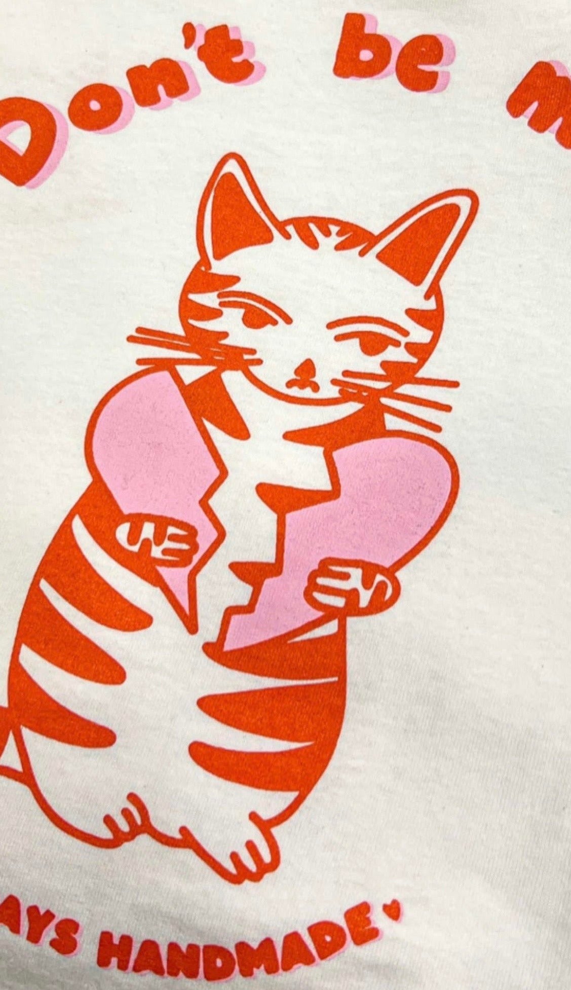 Heavy cotton front & back screenprinted t-shirt with the cutest cat design.