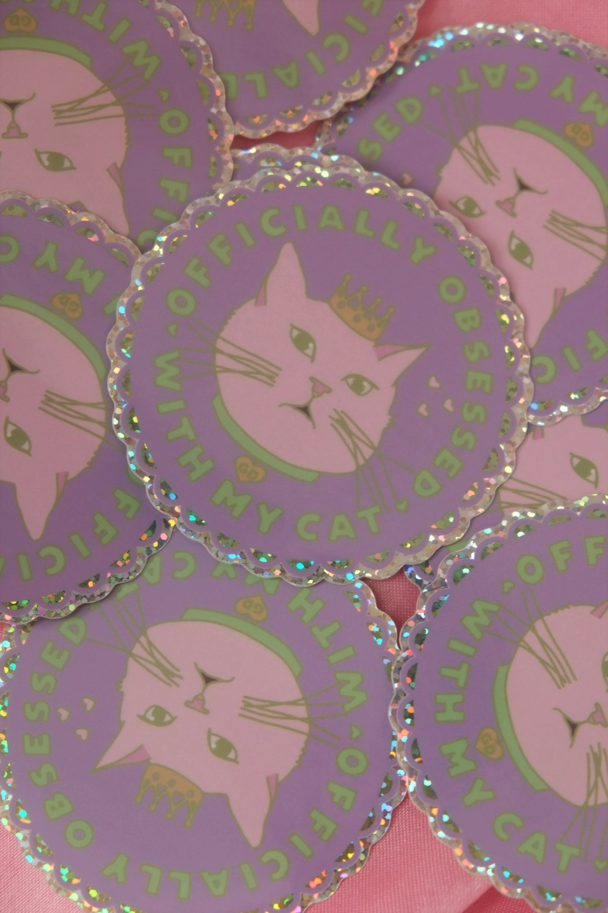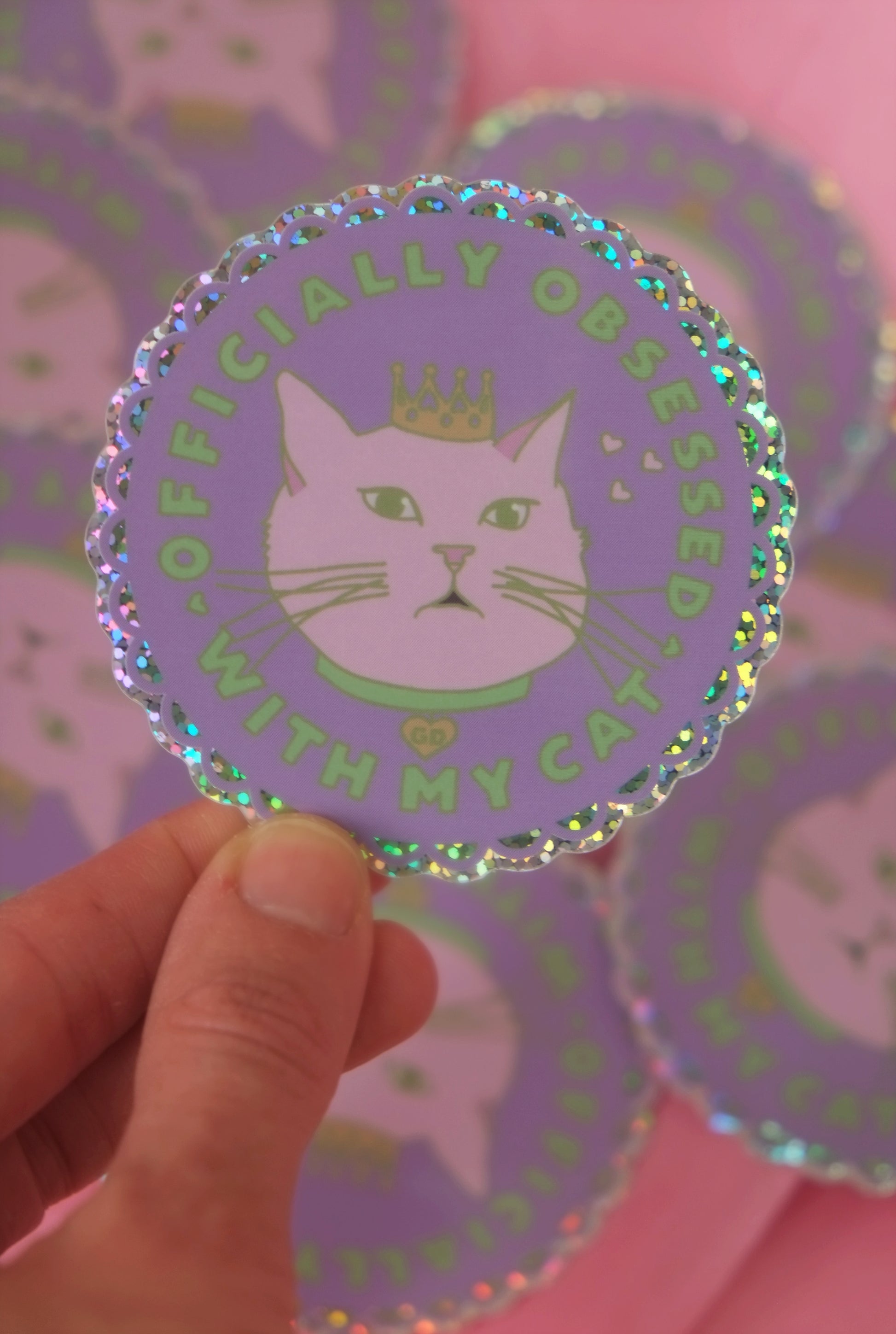 Obsessed with my cat official badge, in holographic sticker form.