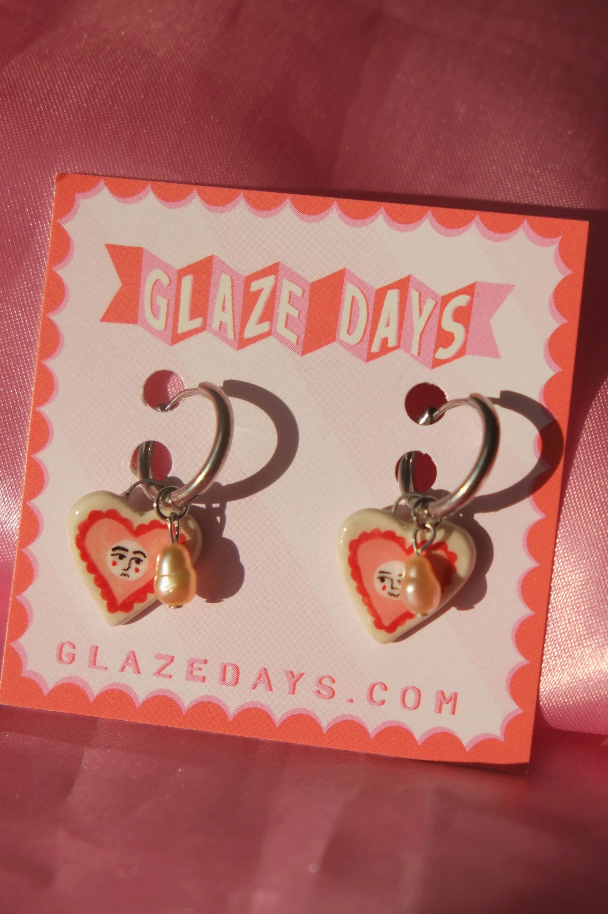 Silver stainless steel hoops with double sided handpainted porcelain charms and freshwater pearls. Reversible charms, you can modify to your perfect combination. Nickel-free and hypoallergenic.